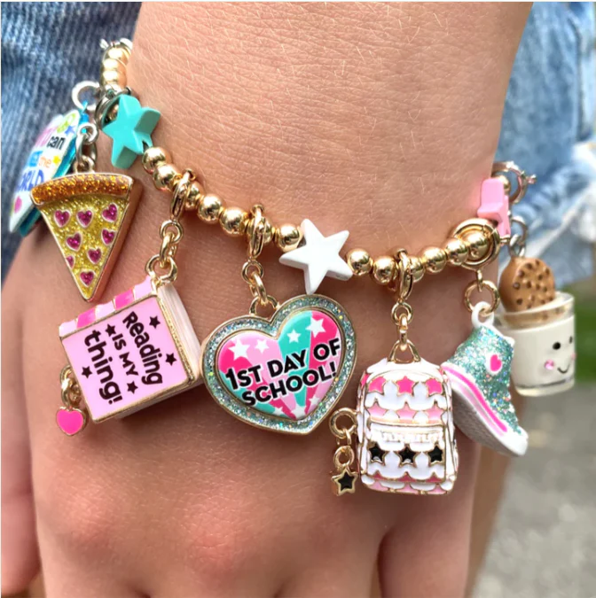 - Includes a variety of colorful charms such as hearts, keys, and cotton candy, making it a fun accessory for kids.