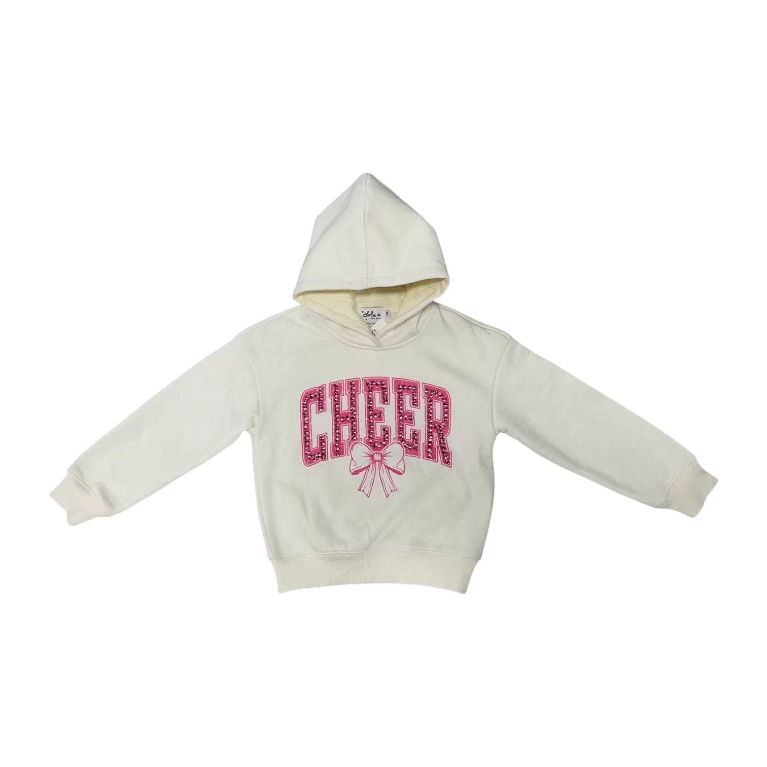 - Cozy pullover sweatshirt featuring bold “CHEER” lettering with crystal-inspired sparkle.