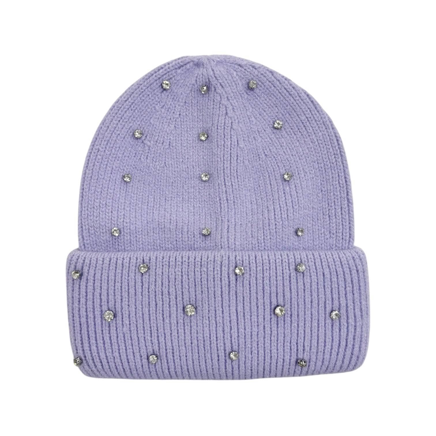 - Stylish pink beanie adorned with sparkling gem embellishments for a touch of elegance.