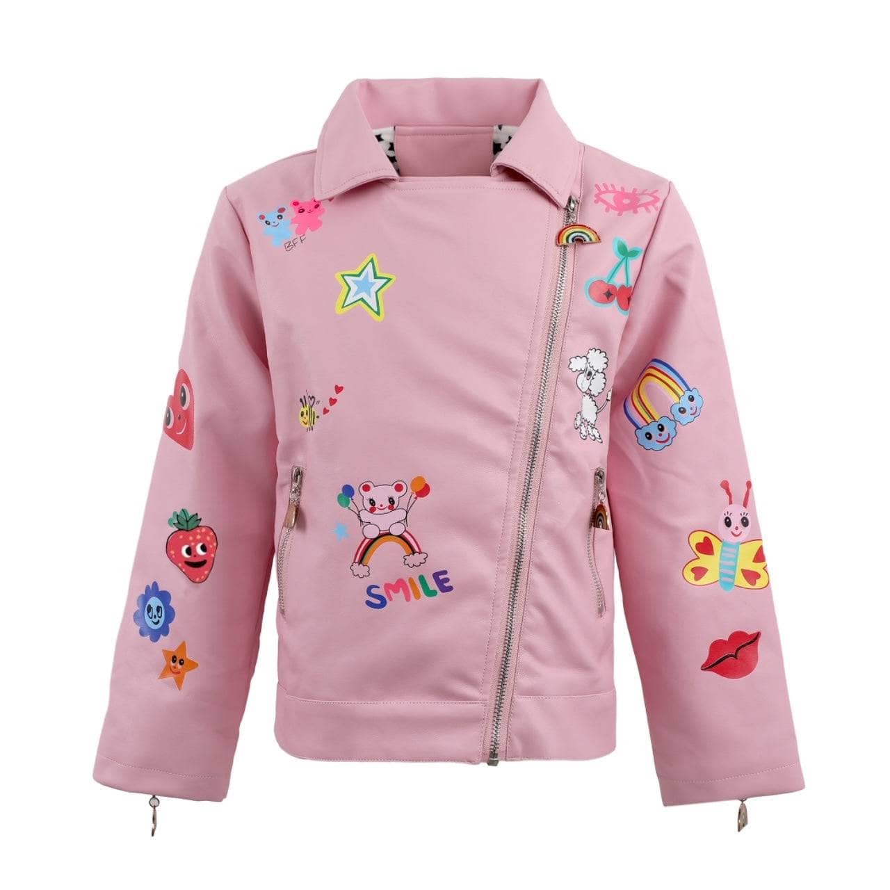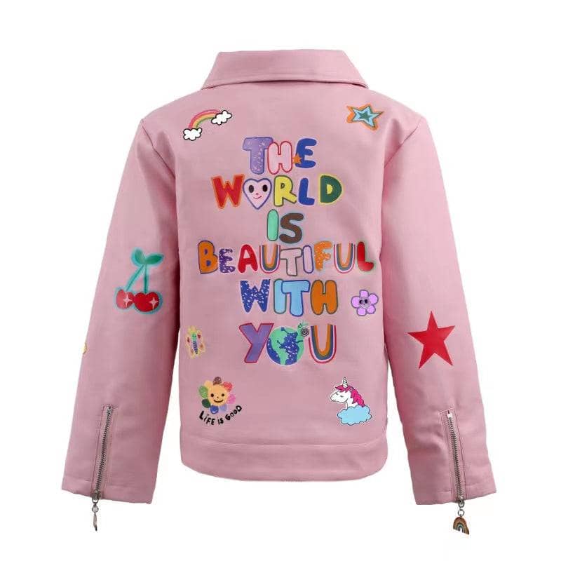 - Bold and playful vegan leather jacket featuring unique, vibrant doodle art and whimsical graphics for an eye-catching look.