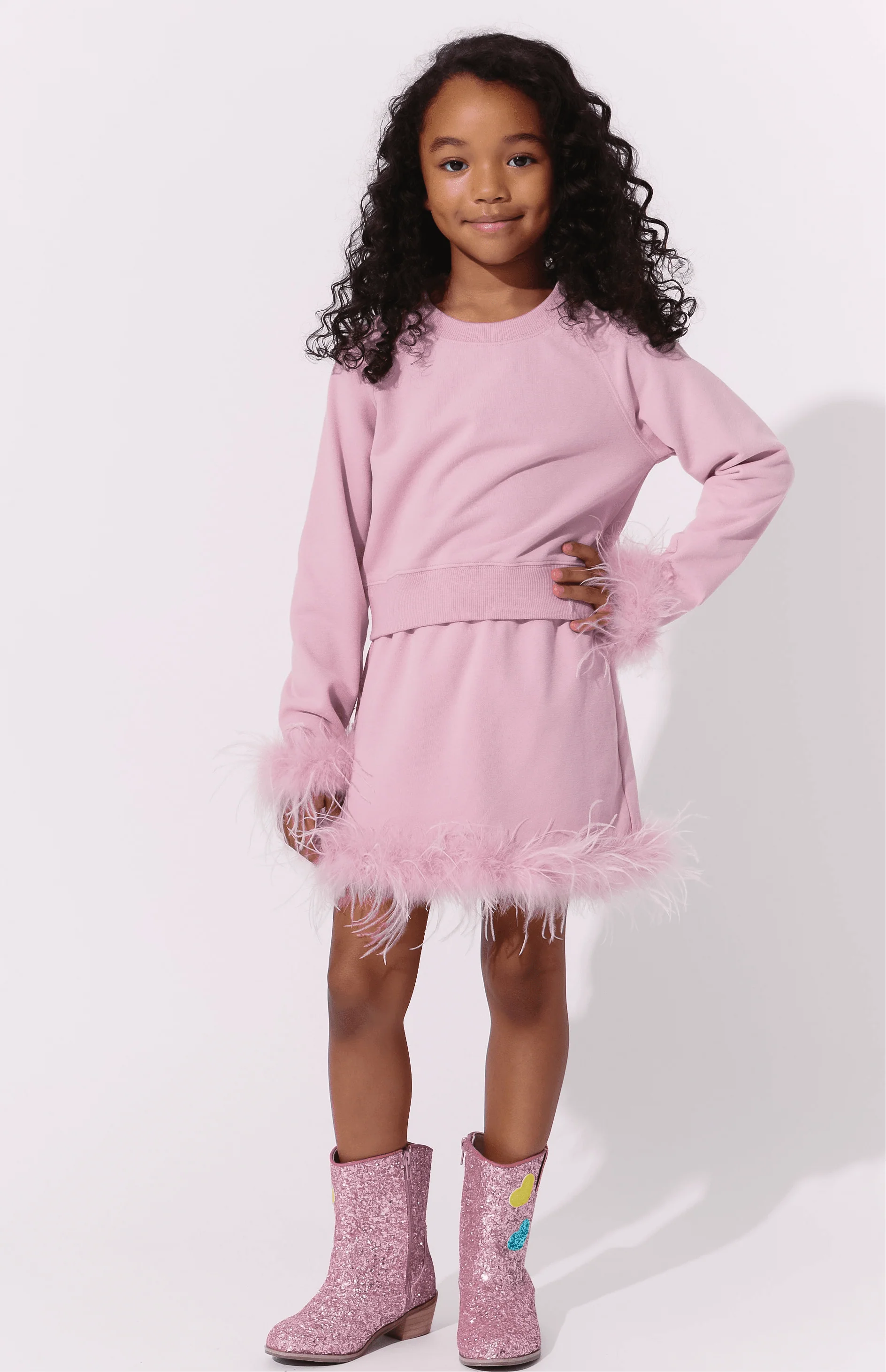 Pink Feather Sweat Suit