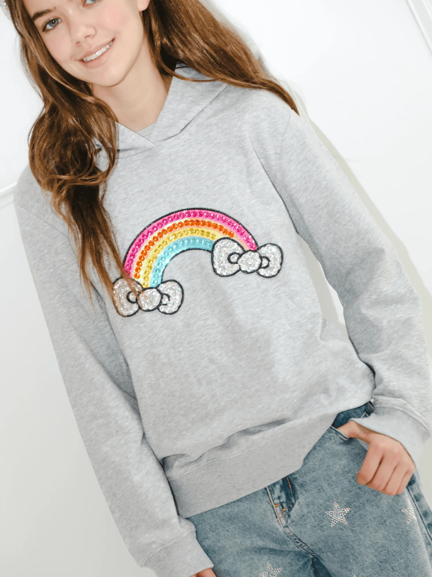 - Bejeweled rainbow hoodie featuring Hello Kitty® signature bow.