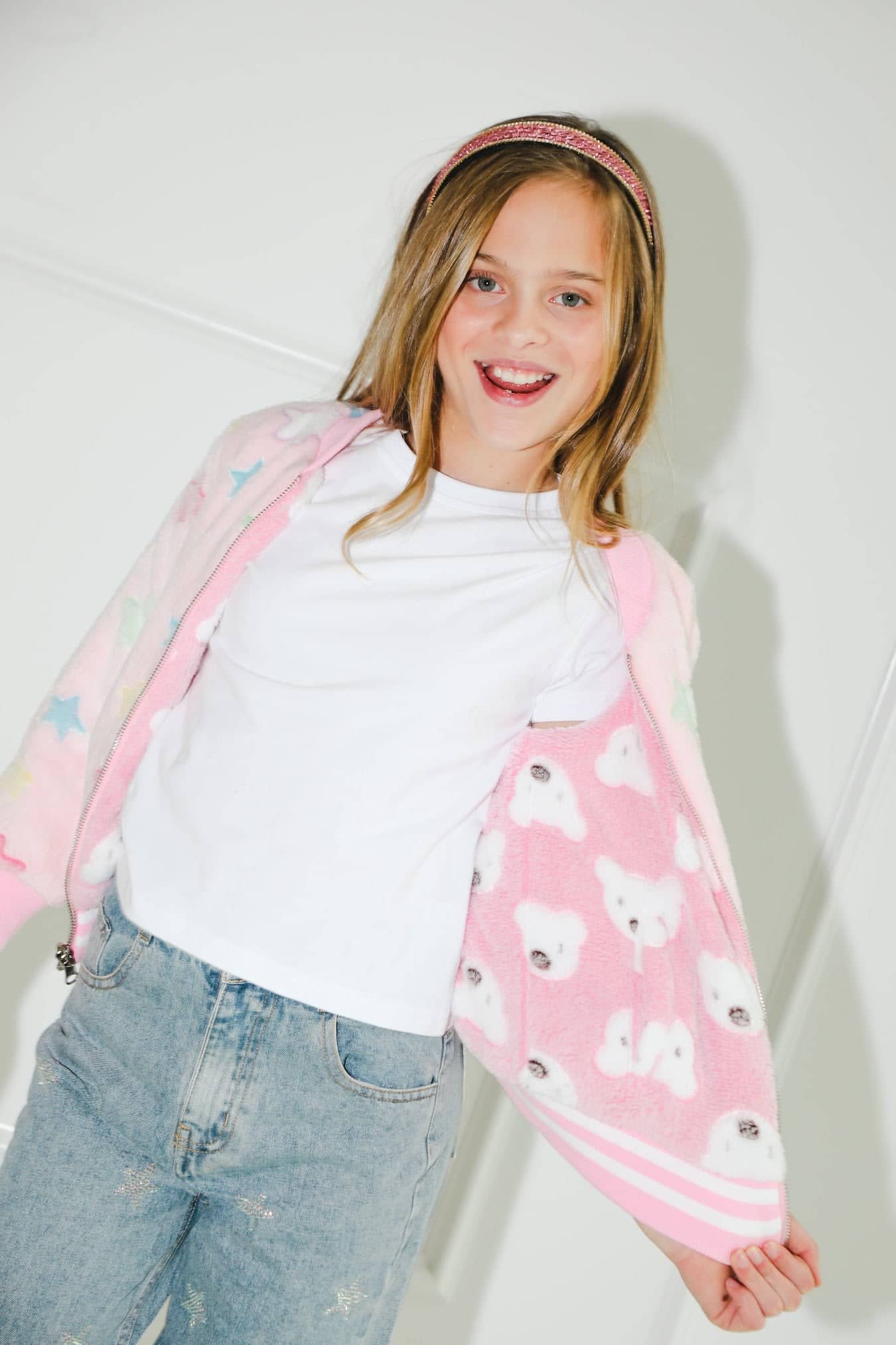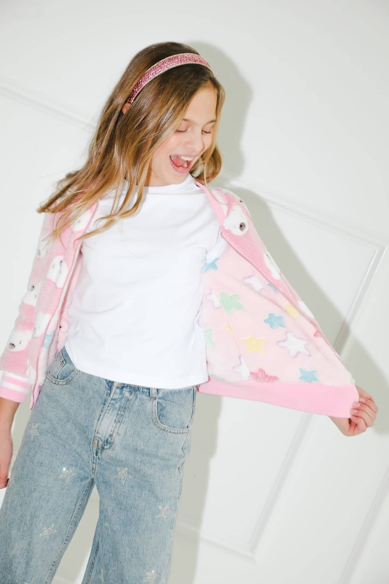 - A versatile and soft bomber jacket featuring a reversible design for two adorable looks in one.