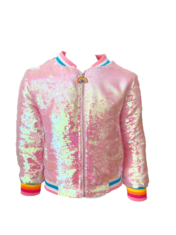 - Elevate any outfit with this dazzling pink sequin bomber jacket.